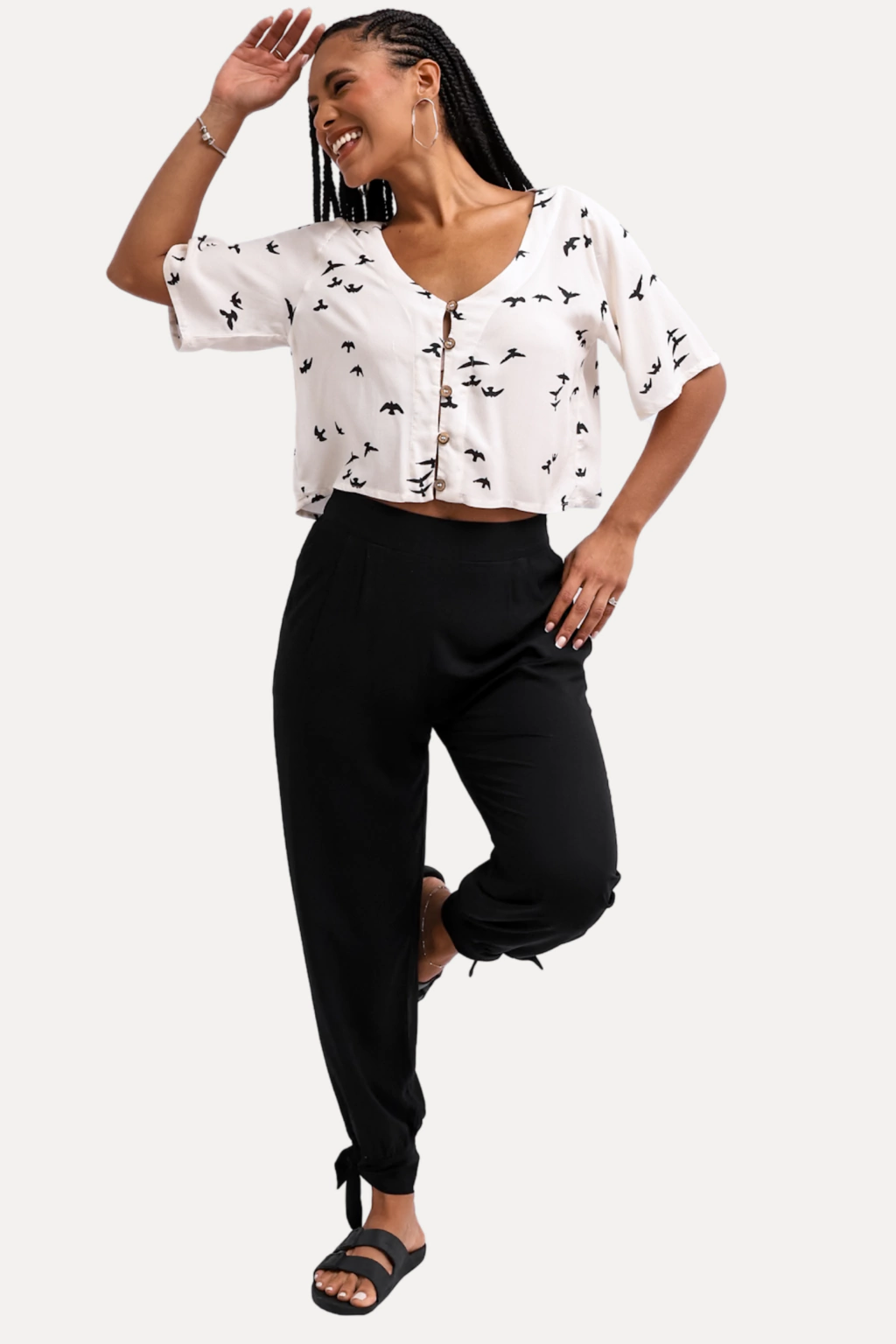 A Calça Netuno é aquela peça que une praticidade e sofisticação sem esforço! Com cintura ajustável, pregas que garantem um caimento soltinho e amarração nos tornozelos, ela traz um toque moderno e despojado ao look. Versátil e confortável, vai do casual ao chic com facilidade. Aposte na Calça Netuno para composições cheias de personalidade e conforto!