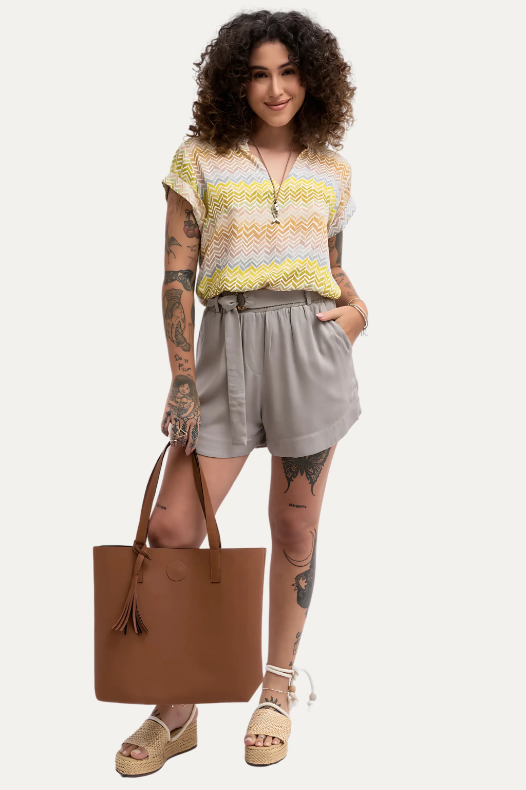 O Short Madá é leve, confortável e estiloso! Possui cintura alta com elástico embutido e cós com costura aparente, que garante ajuste e conforto. O cinto faixa com fivela acrescenta charme à peça. Com modelagem soltinha nas pernas, ele veste bem sem marcar e é perfeito pra compor looks leves, práticos e elegantes.
